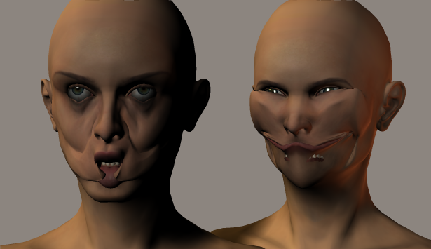 To give you an idea of how much faces can be manipulated in Poser, note that the model used for the Nightmare Woman is the exact same one used for Teresa, the RinkWorks subscriber. (The Nightmare Man is perhaps more recognizably the one used for Bruce.)