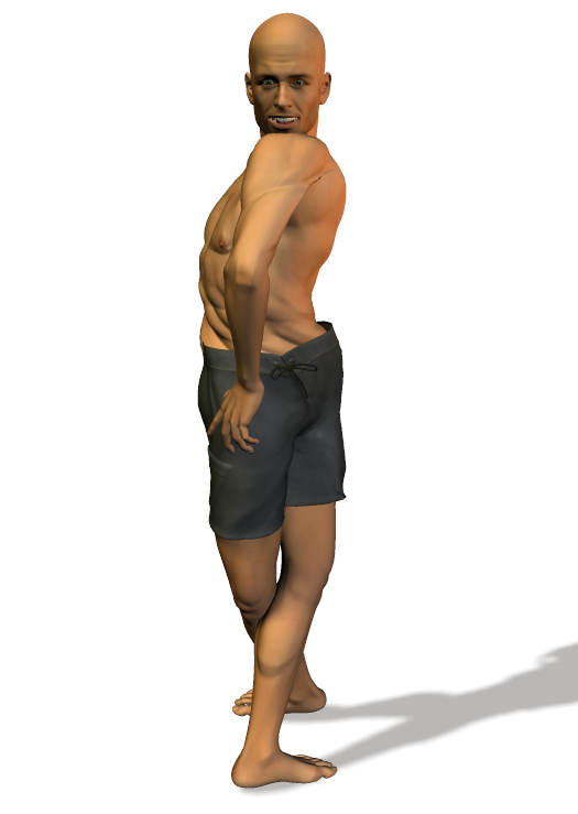 The human models also have more complicated morphs relating to how the human body actually moves. The various joints can be bent, twisted, or moved side-to-side, whether or not that movement is normally possible by the human body. For example, the shoulder joint can perform all three of these movements, but the elbow only does one. No matter, in Poser you can do all three, and in fact microadjustments of such "impossible" moves sometimes actually makes sense.