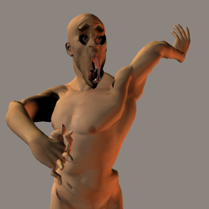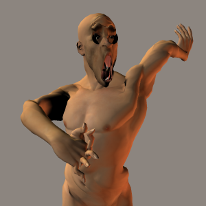 I thought it might be interesting to render a few quick animations of the Nightmare Man starting out in a normal, neutral pose, then gradually being distorted beyond all sense of reality.